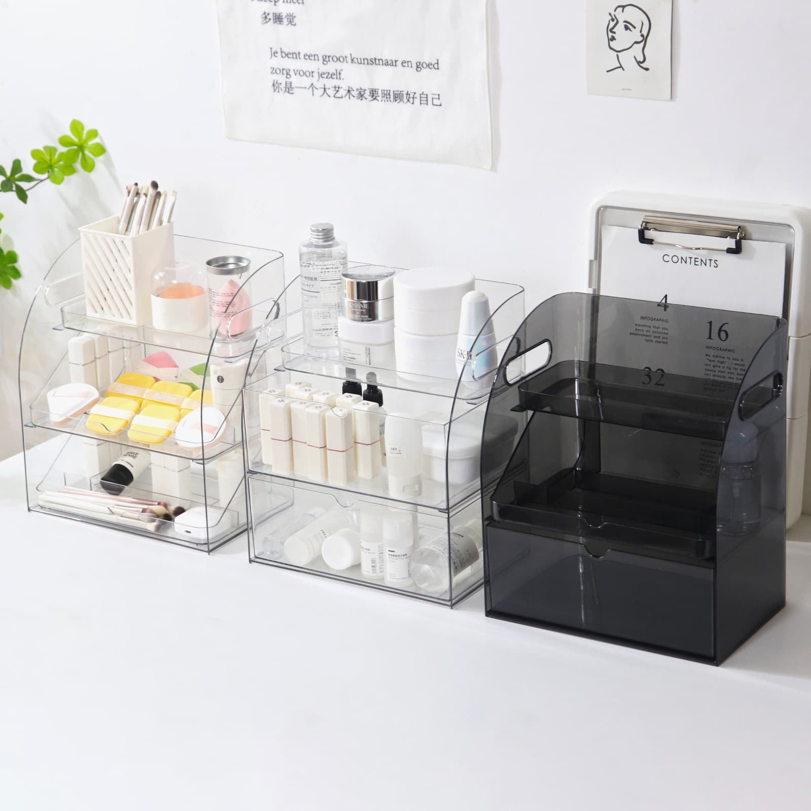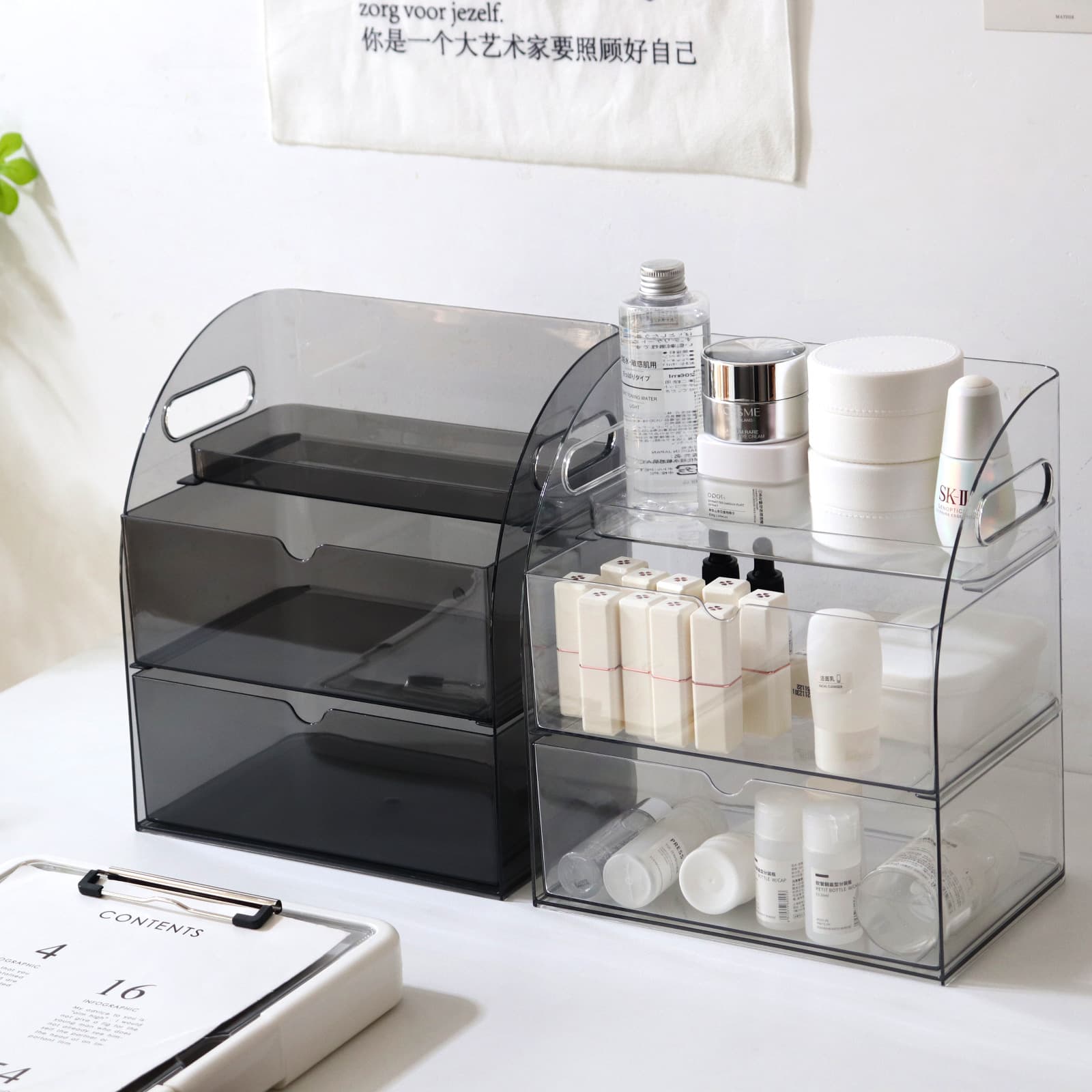 Keep your makeup collection organized and dust-free with our premium multi-layer cosmetic organizer. Features transparent acrylic design for easy visibility and elegant appearance.